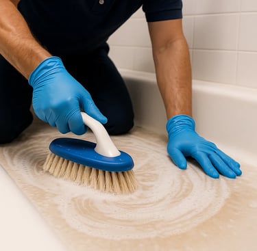 We remove soap scum, residue, and buildup to ensure maximum bonding of the traction-enhancing treatment.